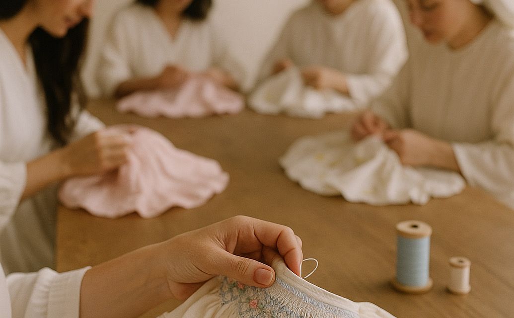 Cada prenda está hecha con paciencia, dedicación y cariño por manos artesanas que creen en la magia de lo bien hecho. Los hilos se entrelazan como lo hacen los lazos familiares, transformando telas de algodón puro en pequeños tesoros que abrazan la infancia con ternura.